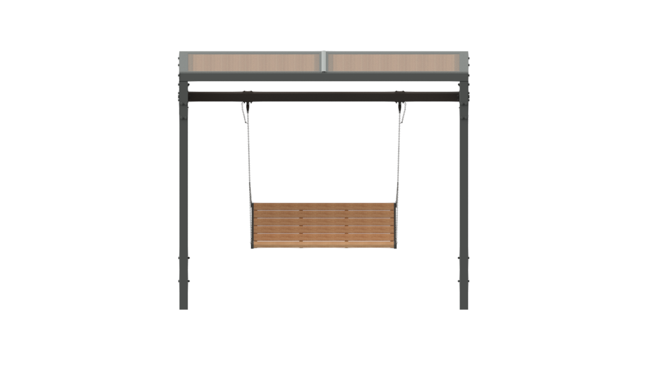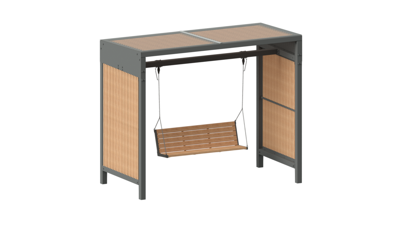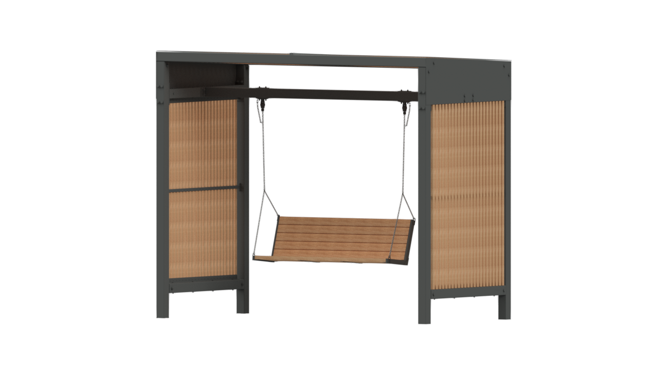 Беседка с качелями SK00386 — современный элемент городской мебели, объединяющий зону отдыха и подвесные качели. Конструкция позволяет создать уютное пространство для расслабления и общения в общественных и жилых пространствах, делая территорию более привлекательной и функциональной.