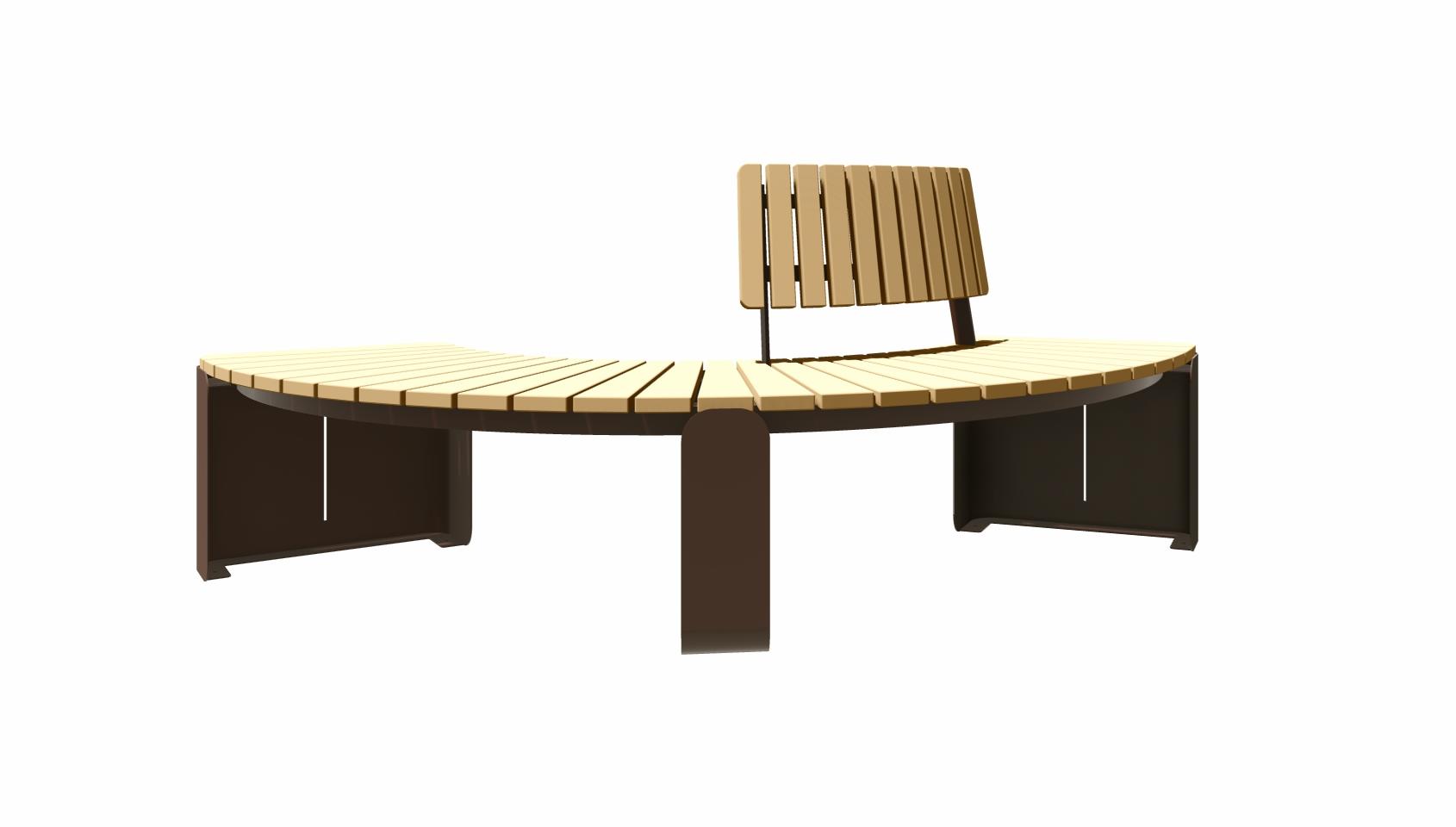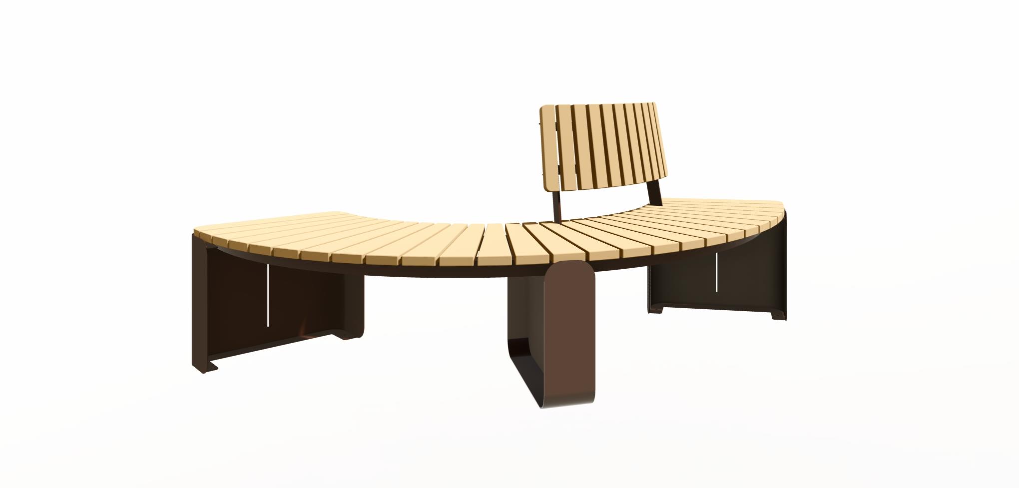 Скамья SK00379 — дизайнерская уличная скамья для современных общественных пространств. Модель сочетает радиусную геометрию, массивные опоры и деревянные элементы, формируя удобную зону отдыха с архитектурным характером.