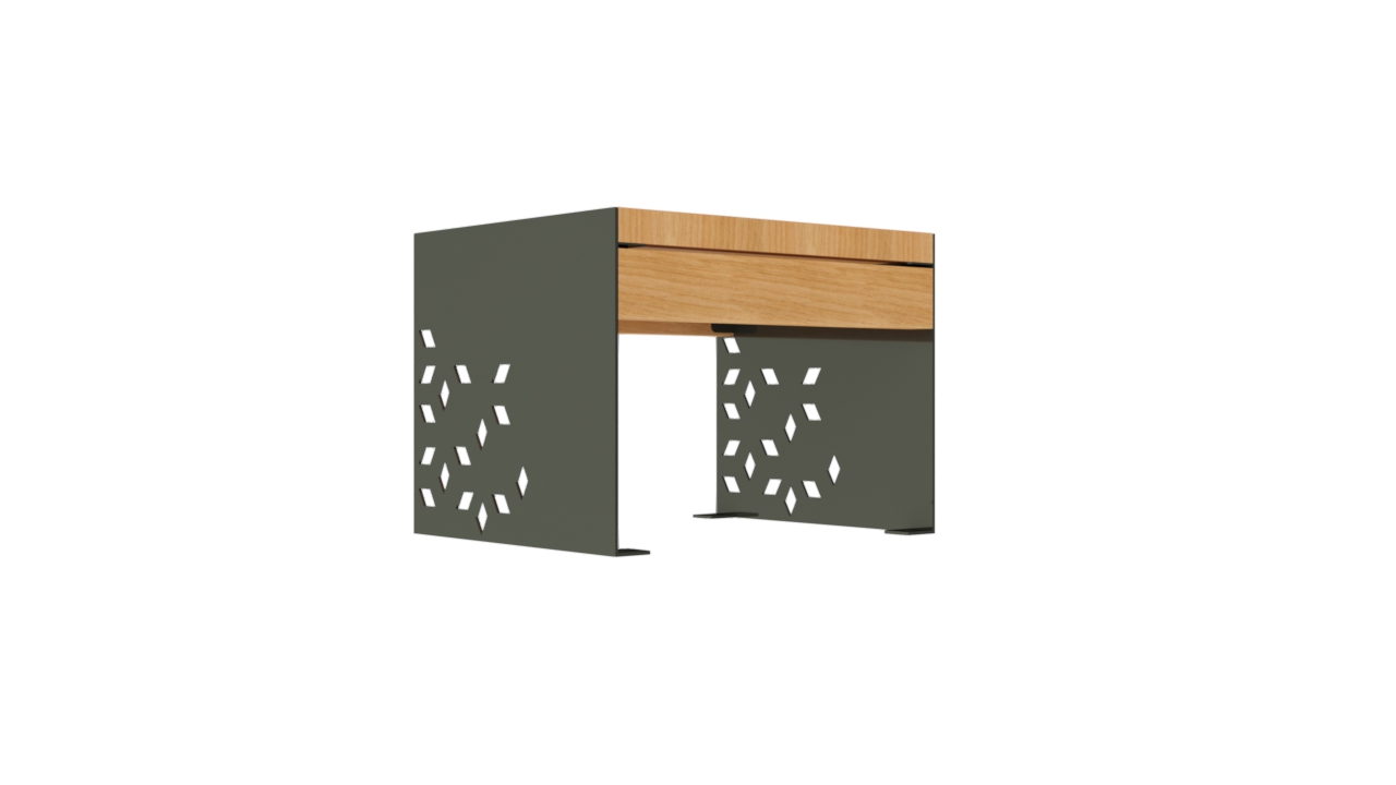 Минималистичная форма и сочетание металла с древесиной соответствуют актуальным трендам городского благоустройства.